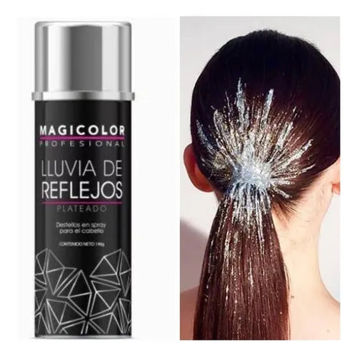 Spray con destellos multicolor, de fácil aplicación y enjuague rápido. Ideal para conseguir el terminado del peinado resplandeciente.